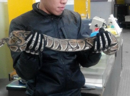 据报道,松山机场货运站24日早上6点多进行安检时,竟发现一只长达1米长、直径10厘米的活体蛇,但货物名称却是“礼盒”,吓了安检人员一跳,赶紧将蛇取出检查。台北航空警察局表示,蛇虽不属危险物品,但依据立荣航空公司货运手册规定,蛇类活体均不可载运,仅能以海运方式寄送。
