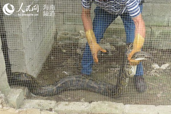 海南白鸽养殖场内查获17条蟒蛇 企业主被捕