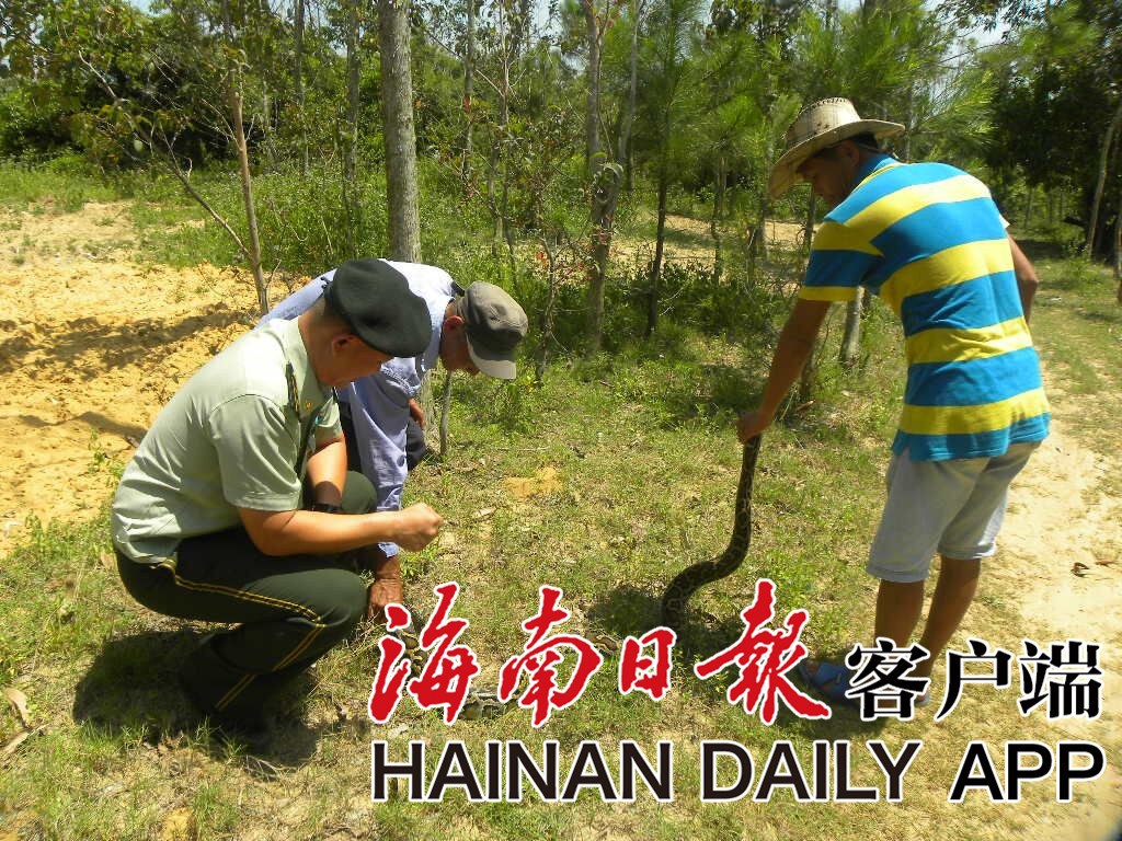 原标题:30斤大蟒蛇闯入海南文昌一民宅边防民警抓获后放生