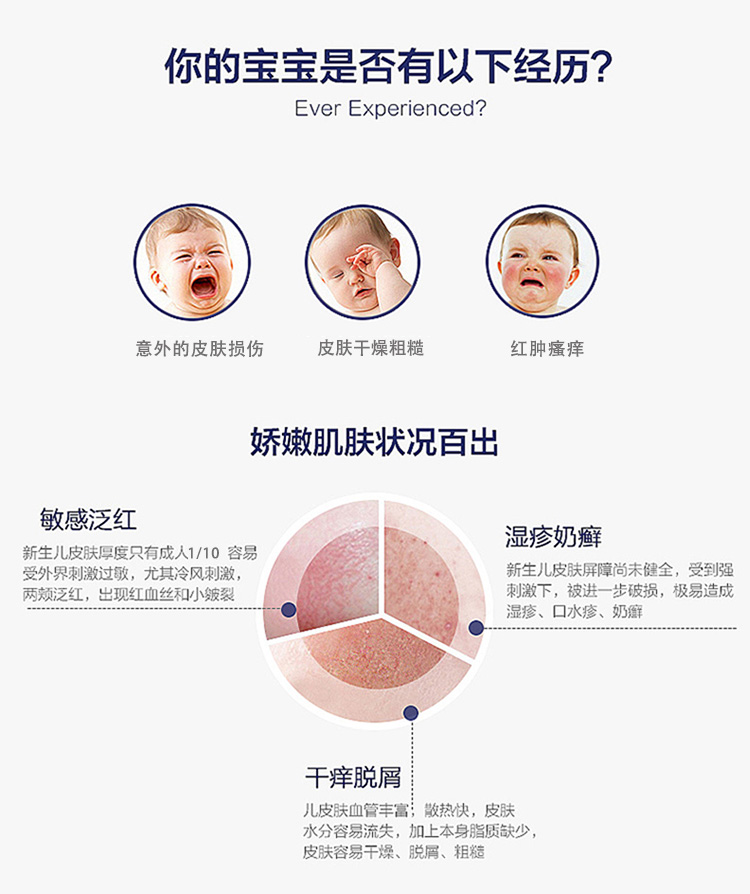 适用范围:可以安全有效快速的使用于婴幼儿皮肤的湿疹、奶癣、红屁股、蚊虫叮咬、伤口破损与嘴唇干裂、哺乳期妈妈乳头干裂疼痛、白色念珠菌、痔疮消肿、皮肤干裂脱皮、冻疮、过敏性皮炎等皮肤问题。